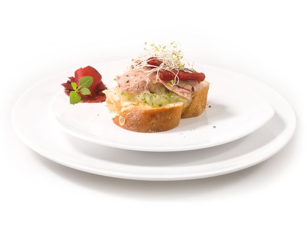 Wenn es mal etwas ganz besonderes sein soll, kann man die Rote Bete durch Wintertrüffeln aus dem Perigord (Dose) ersetzen. Außerdem passen anstatt Kompott auch Obst-Chutneys sehr gut dazu, z. B. Rhabarber-Chutney.Uwe Meßners Weinempfehlung: Dazu ein Glas halbtrockner Riesling von der Mosel – stilvoll und exklusiv.