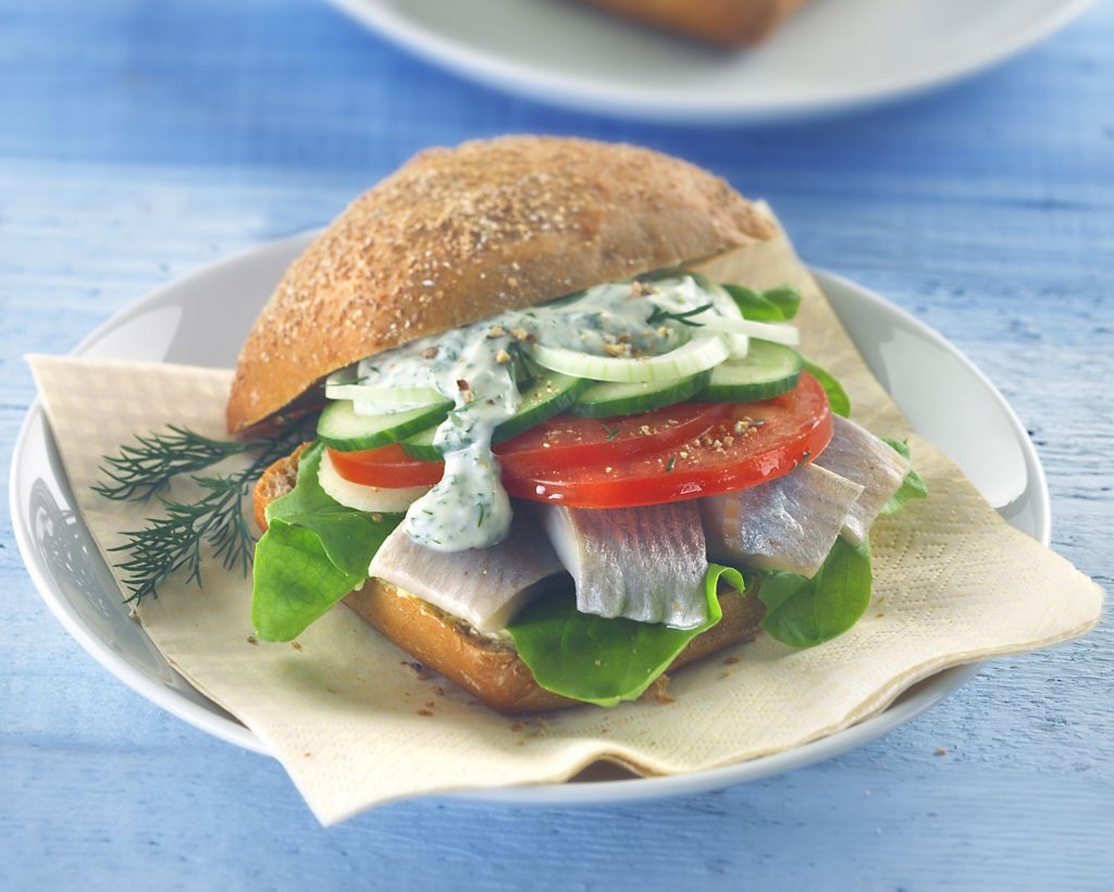 Die Petersilie waschen und fein hacken. Beides über das Apfel-Fenchelgemüse geben, mit den Matjesfilets auf einem Teller anrichten und mit der frisch-pikanten Sour Cream servieren.